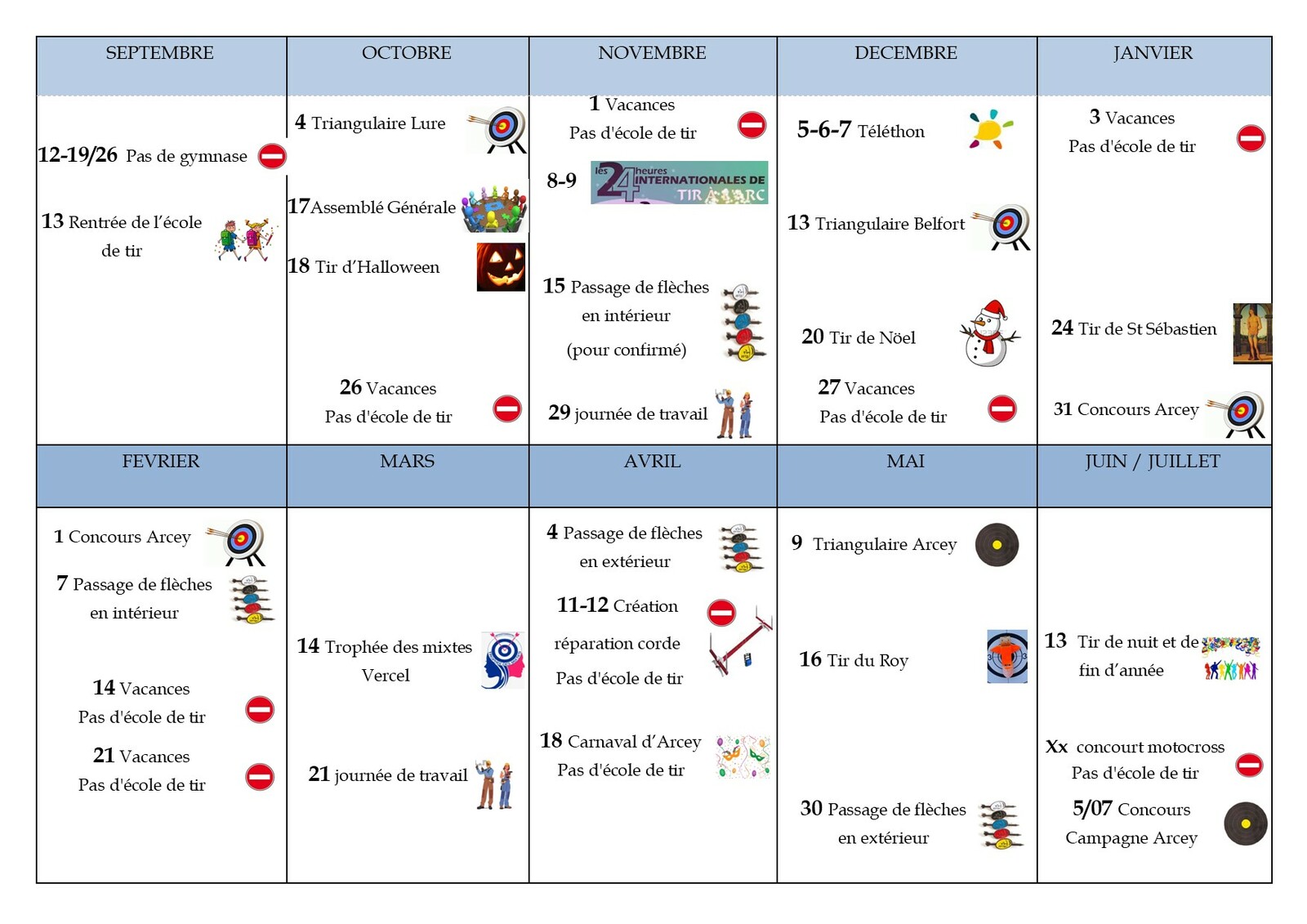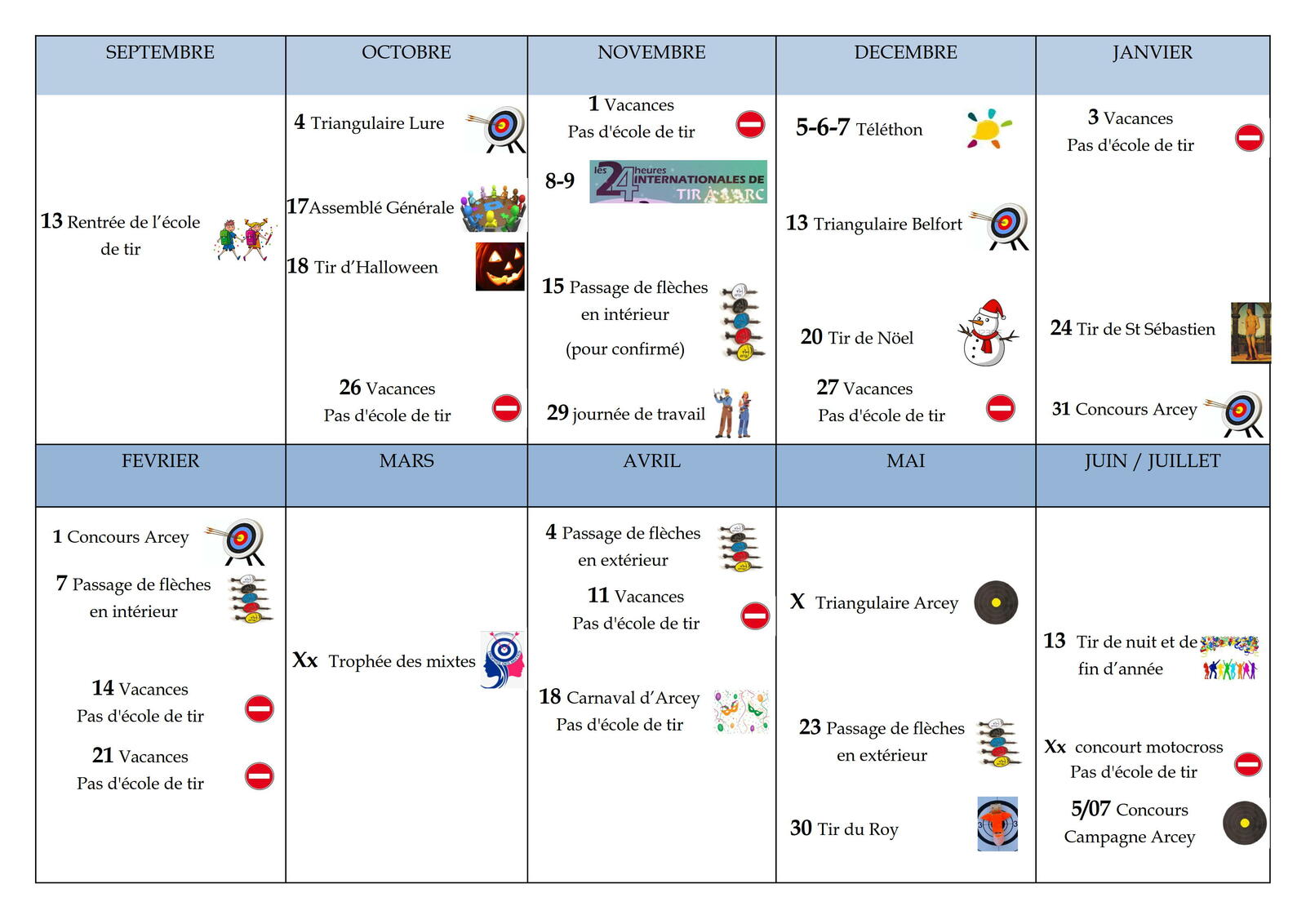Celui-ci contient les tirs de tradition, les différents passages de flèches, les tirs festifs ainsi que d'autres informations.